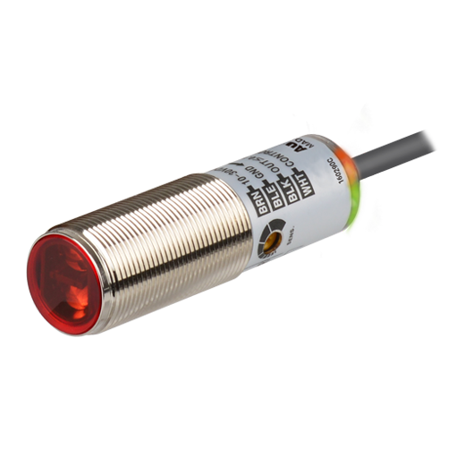 Ø18mm 圓柱形光電傳感器 BRQ 系列產品,按檢測方式分有前面,側面檢測型,按材質分有塑料,金屬(黃銅鍍鎳), SUS316L 材質,可滿足用戶多種環境需求。 本產品最大檢測距離可達 30m,具有很強的抗干擾及抗外界光功能,檢測性能優越。另外具有防相互干擾功能,可近距離貼緊安裝,短外殼設計,節省空間,IP67防護等級不僅在粉塵及洗滌,噴射等環境下使用,而且具備IP69K防護等級,可在噴水和高溫(蒸汽),高壓噴射環境下也可放心使用。